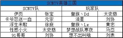 比赛伊始双方早早在中路河道集结准备一级火拼,玩家队刘表、太史慈、元宗分别斩获一二三血,为玩家队开下好头。1分钟时玩家队ADC连斩两人,并且不断施压稍有机会便要取其首级。7分钟时玩家队下路二人越塔强杀,却被埋伏在旁的咖啡组二人反抓一波。不过这并不能阻止对面黄忠的杀戮,中期玩家队黄忠不断收割人头,使得这一并不强势的ADC英雄开始进入无解肥节奏。最终SCNTV咖啡组遗憾的输掉了这场比赛。
