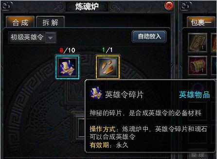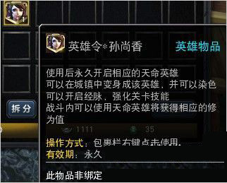 接下来就到变身了,变身还需要另一样道具移魂石,获取途径与上类同。先使用英雄令激活相应的天命英雄: