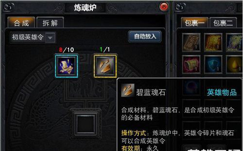 当您获取足够材料后,请点开包裹,在包裹的右下角有一个炼魂炉按钮,在炼魂炉中即可进行相应的合成。