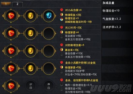 这套符文能提供给你出门攻击加10,气血恢复加4,法抗+16的额外属性,虽然在攻击上和全攻击的符文有所差距,但是有了气血恢复在前期续航上比那个强大很多,同时他激活了旁边的额外属性是无比强大的,在和全攻击符文对拼中不会落下风